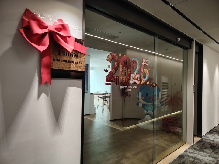 新黄河记者了解到,安立身目前在全国的门店数量达到60多家。杭州安立身健康管理有限公司注册地在杭州市滨江区西兴街道的世贸智慧之门,同时这里也是所谓的“安立身身高管理杭州运营中心”。在一栋写字楼的14层,这家公司的大门已经锁上了,从透明玻璃门望进去,里面的办公室已是人去楼空,但玻璃门上贴着的新年祝福标语显示,春节前这儿还正常营业和办公。物业工作人员告诉新黄河记者,这个办公室很大,里面有340平方米,不是租赁的,就是这家公司自己购买的产权房。