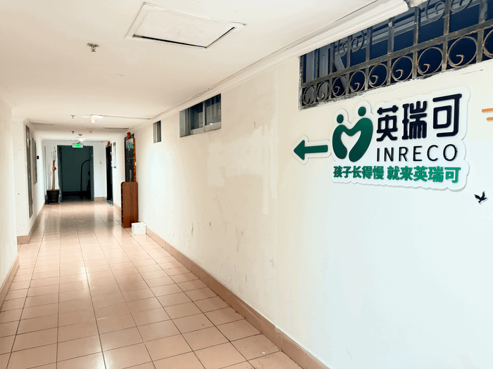 3月16日中午,新黄河记者来到福州市鼓楼区东百中心西塔楼16层的英瑞可线下门店。记者注意到,门店位于商场商住楼内部,周围多是一些小公司和公寓,位置十分隐蔽。但在电梯口转角一出来,就能看到其招牌。新黄河记者在门店门口看到,其大门紧锁,记者按了数次门铃都没有人出现。记者向内望去发现,其内部设施陈设正常,一个大号的身高尺树立在正门处,一旁则是前台,上面写着“打响中国青少年绿色增高对抗西方生长激素增高的第一枪”。
