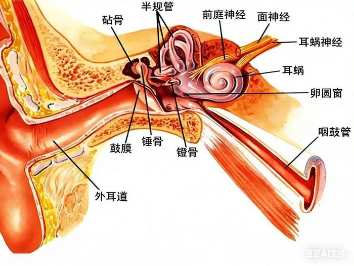 你可以把咽鼓管想象成一根连接中耳腔(耳膜后面的一个小空腔)和鼻咽部(鼻子后端的部位)的“通风管道”兼“排水管道”。它负责平衡气压、排出液体,保证耳朵能正常听声音。