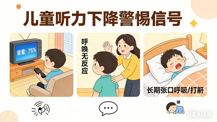 这种听力下降通常是渐进性的,孩子不会喊痛,很容易被忽视。家长可以留意这些细节:看电视声音开得很大。呼唤他时常不回应,或注意力不集中。长期张口呼吸、睡觉打鼾。