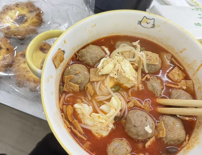李雯常在夜班休息时点上一份爆辣的芋儿鸡。 受访者供图
