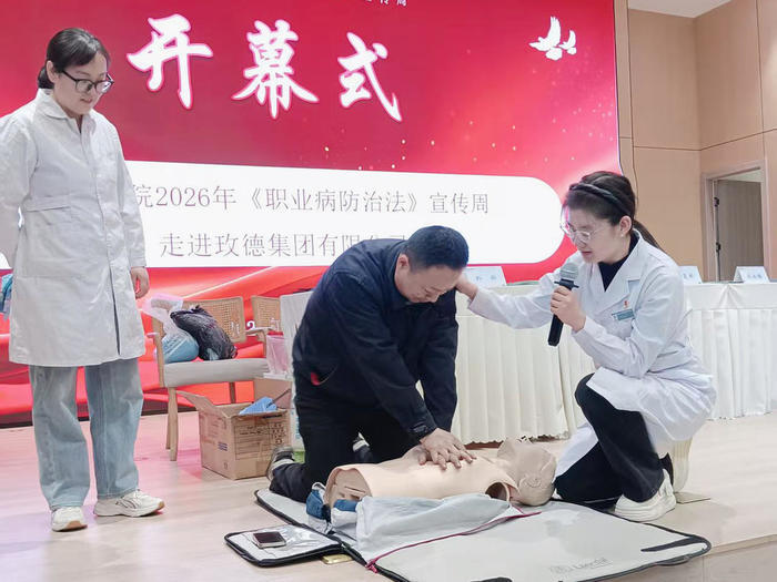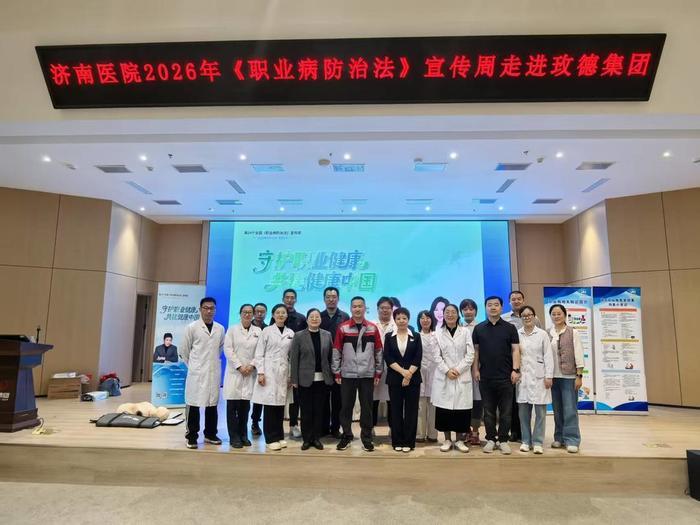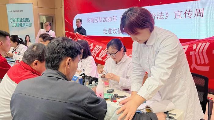 2026年4月24日—5月1日是全国第24个“职业病防治法宣传周”,今年的主题是“守护职业健康 共建健康中国”。4月24日,济南医院院长、党委副书记谷晓新带队走进平阴玫德集团有限公司,开展“职业健康知识宣教+多学科义诊”形式的职业健康宣传活动,为一线劳动者普及职业病防治知识,提升劳动者职业健康素养贡献力量。