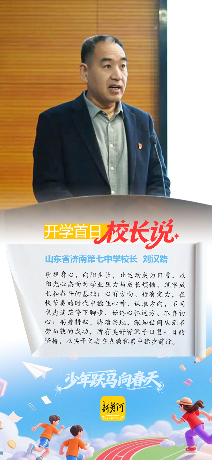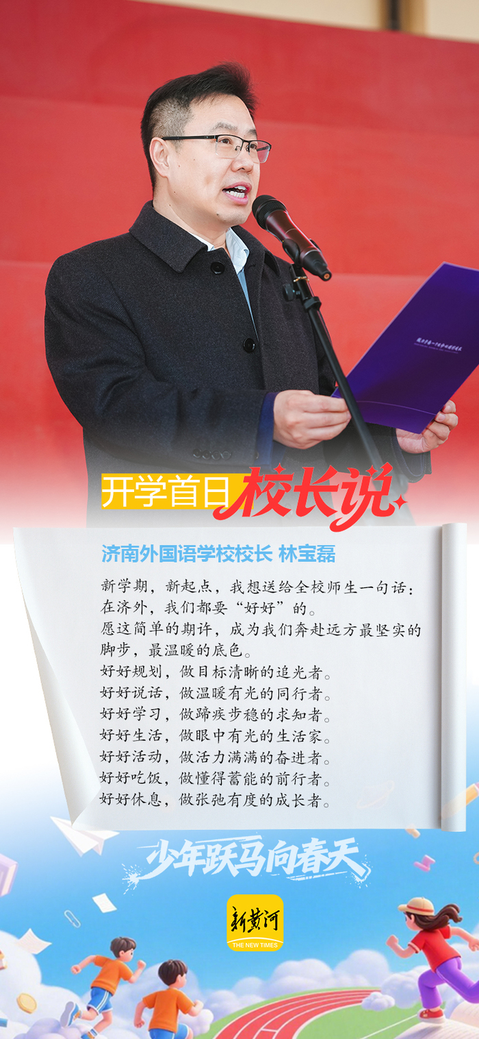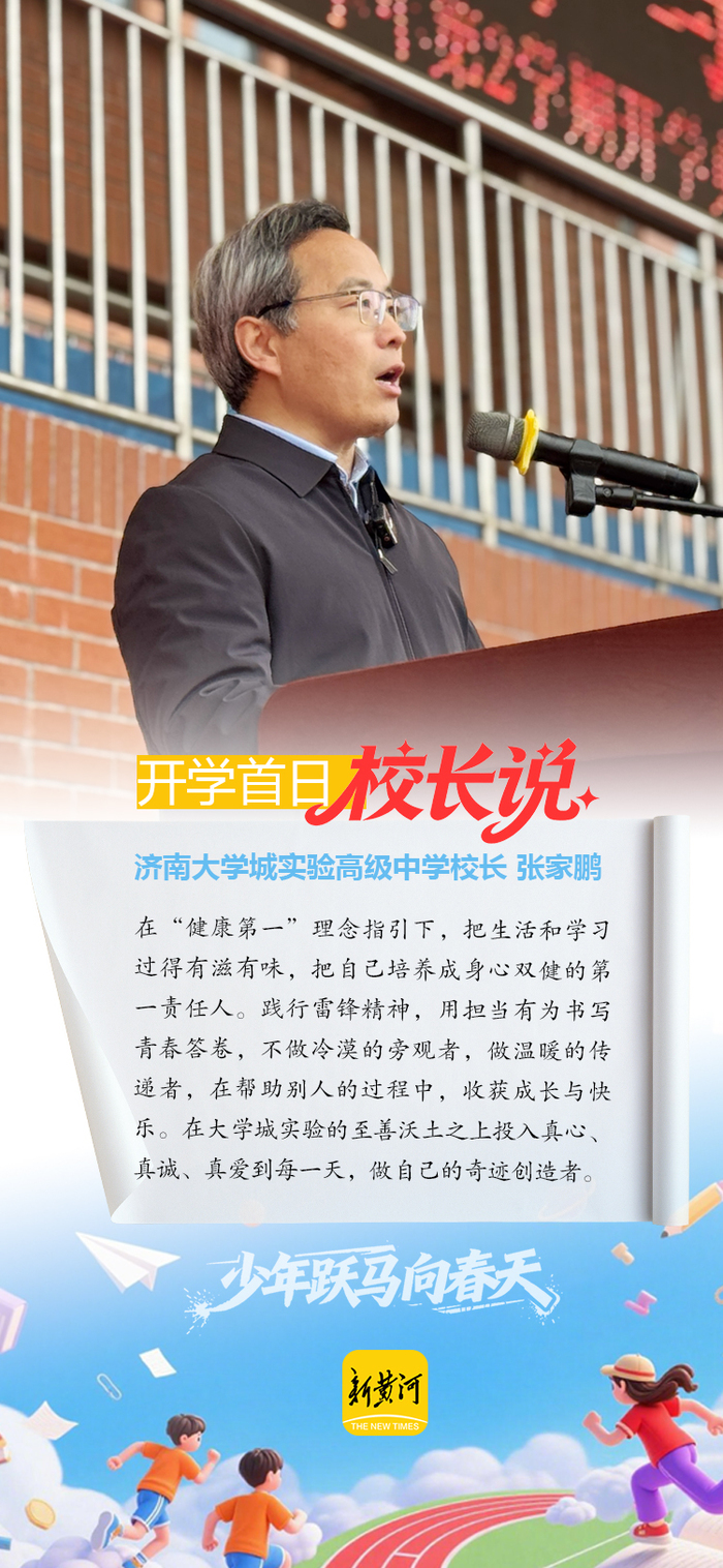 新学期开始,2026年高考进入百日倒计时,济南各高中学校校长纷纷在开学典礼上发表燃情寄语,这些寄语,或“金句”频出,或温暖动人,或立意深远,字里行间蕴含着对学子们深深的期许与关爱。 让我们一同聆听这些智慧的声音,汲取前行的力量。