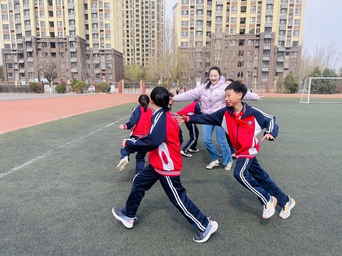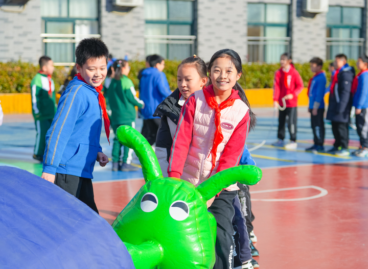 槐荫区泉新学校的操场上,刚刚还在奔跑嬉戏的孩子们,脸蛋红扑扑地跑回教室。四(2)中队的李璐瑶在进教室前,回头看了一眼游戏打卡阵地,嘴角带着笑意。