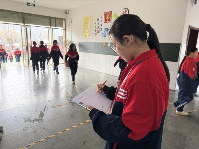 平阴县东三里小学同样成立了课间志愿者、文明监督员、安全小卫士队伍。“由学生参与秩序维护、文明提醒,实现自我管理、自我服务、自我成长。”校长周红香说。