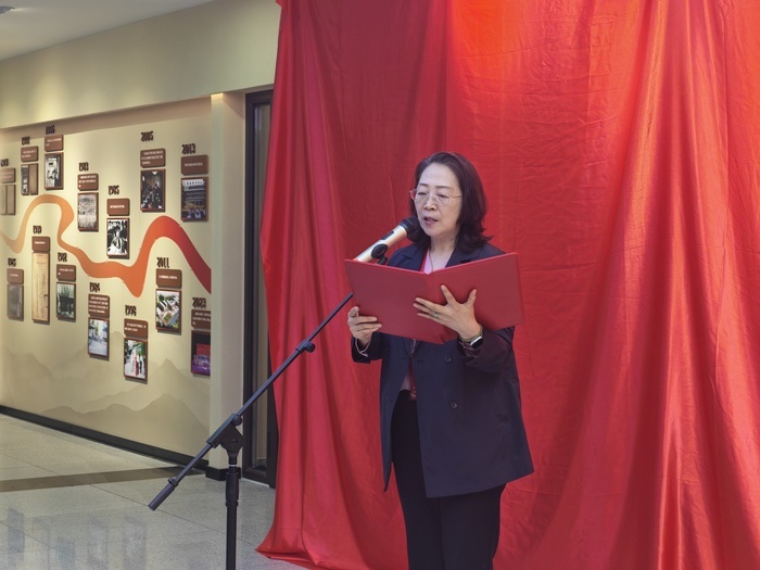 开馆仪式在校歌朗诵、歌曲《百年正谊赞》中拉开序幕,学校校长董翠娟在致辞时表示,此次校史馆的升级改造,正是学校深耕校园文化建设、夯实思政育人阵地的重要举措。学校将充分发挥红色教育基地作用,用好红色资源、讲好红色故事、传承红色基因,以红色文化培根铸魂,以艺术特色立德树人,奋力推动学校各项事业再上新台阶。