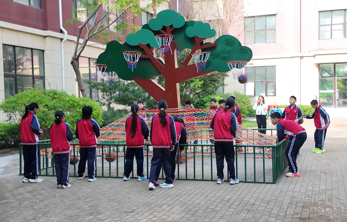 在济南市槐荫区康城小学,课间的校园如同一幅生动的画卷:教学楼前的“投篮树”下孩子们排起长队,走廊里的摸高器不时响起清脆的铃声,连廊的“视力防控区”三五个学生正做着护眼小游戏……这并非个别场景,而是槐荫区全面推行“健康第一”教育理念的日常缩影。