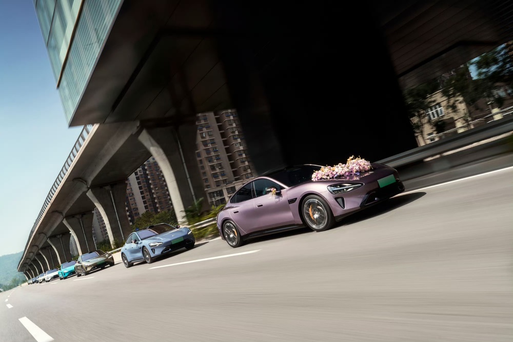 吴蓝在自己的个人社交账号上介绍了小米SU7的多种租赁搭配方案。如一辆珍珠白(寓意白头偕老)SU7做头车+5辆彩色SU7;或是全色珍珠白,同色系车队整齐高级;或是全紫色小米SU7,是新能源热门款。“整个车队采用同色SU7的方案比较热门,另外紫色和洋红备受年轻人青睐。”她称。