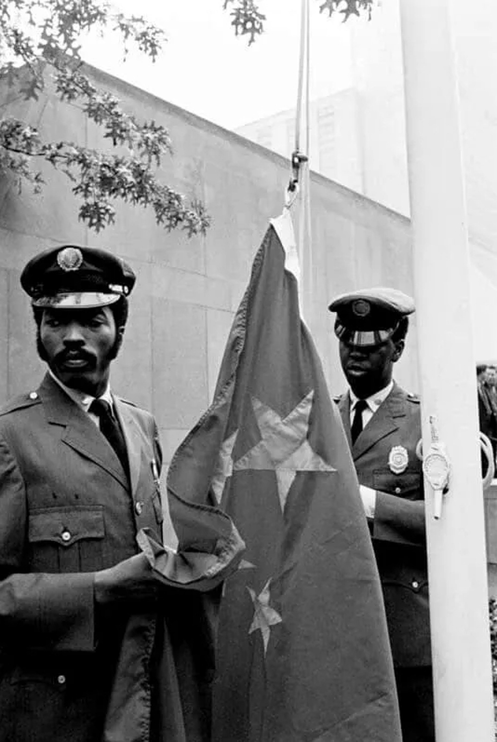 1971年11月1日上午,联合国卫兵正准备在纽约联合国总部升起中华人民共和国国旗。(联合国官网)
