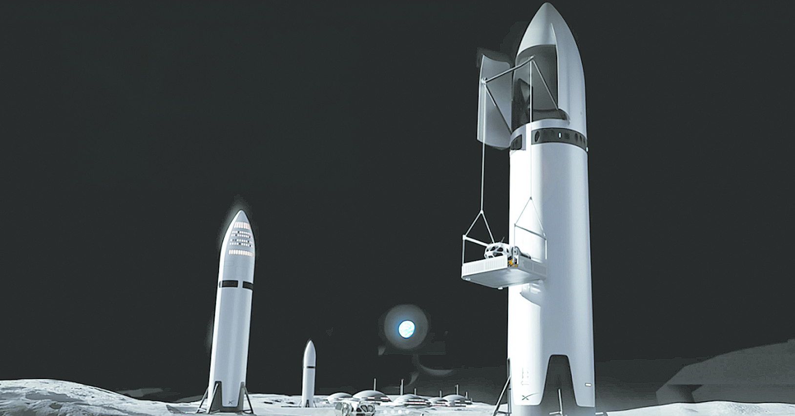 “星舰”飞船大规模登陆月球的概念图。(SpaceX)