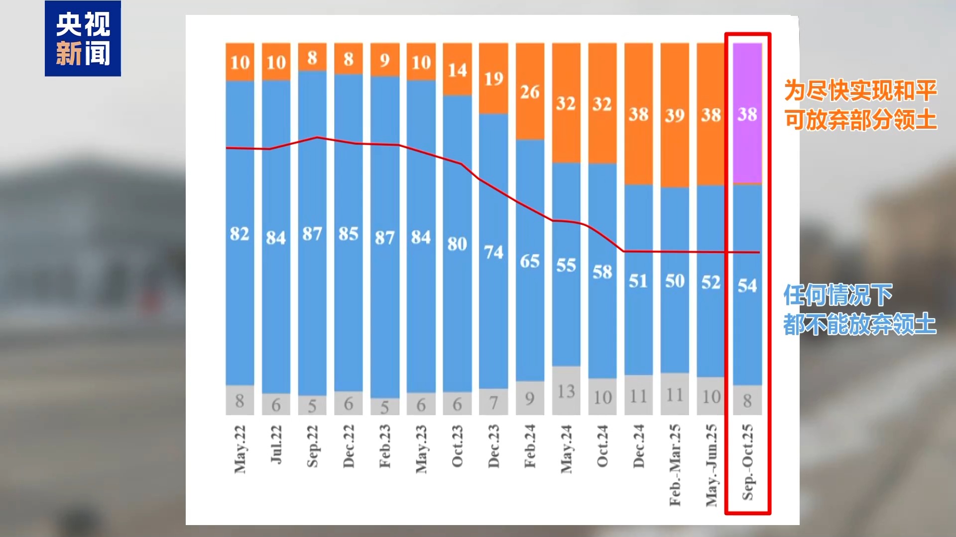 基辅国际社会学研究所10月公布的一项民调显示,38%的乌克兰人对一定程度的领土让步持开放态度。