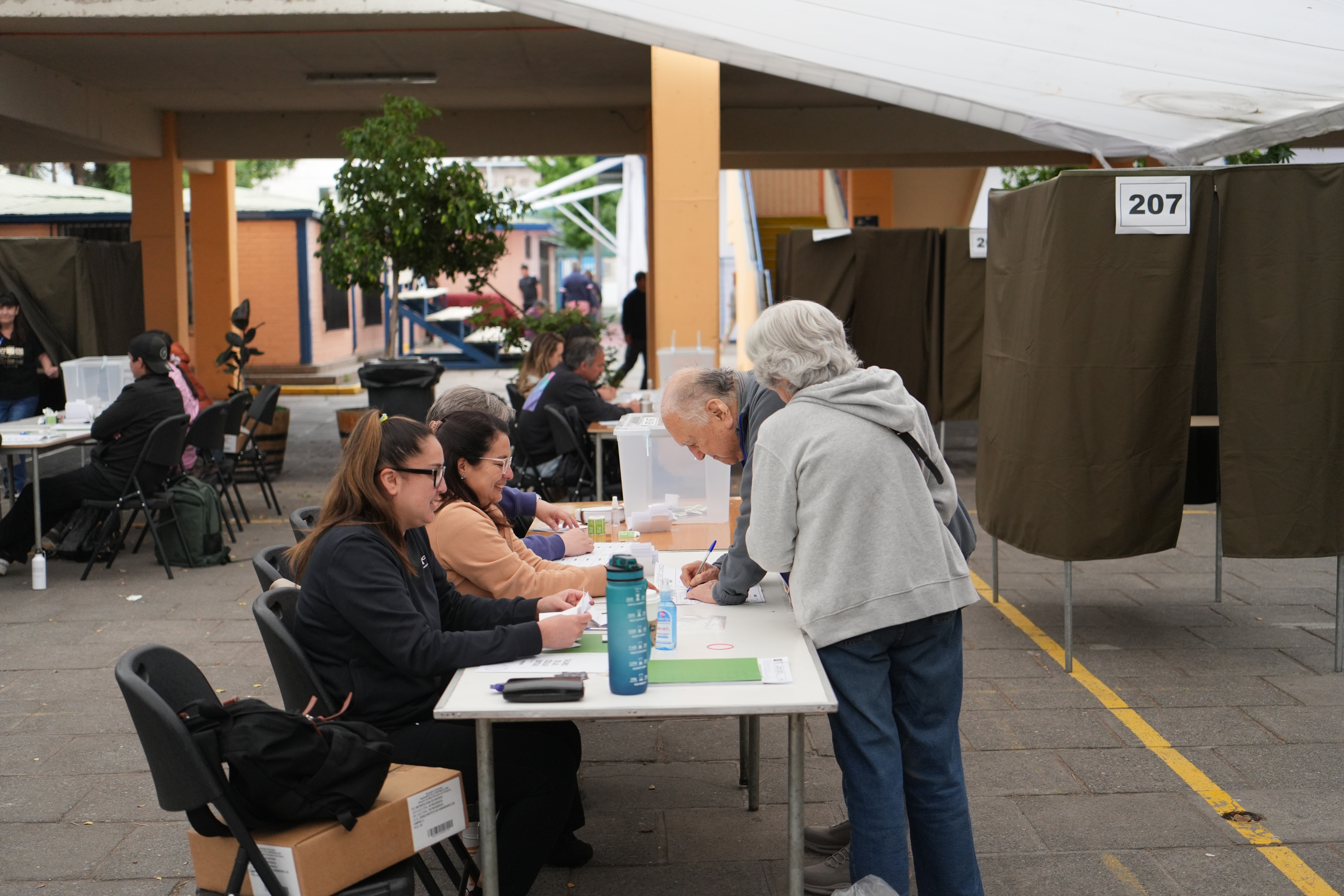 12月14日,选民在智利首都圣地亚哥的一处投票站参加智利总统选举第二轮投票。新华社记者 张铎 摄