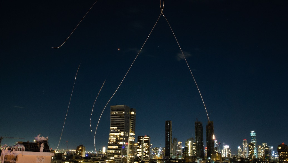 这是2月28日在以色列特拉维夫拍摄的以军发射拦截弹后的光轨。新华社 图