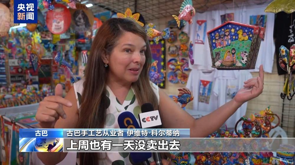 古巴手工艺从业者 伊维特·科尔蒂纳:昨天没开张,上周也有一天没卖出去。这种情况我已经好几年没遇到过了。