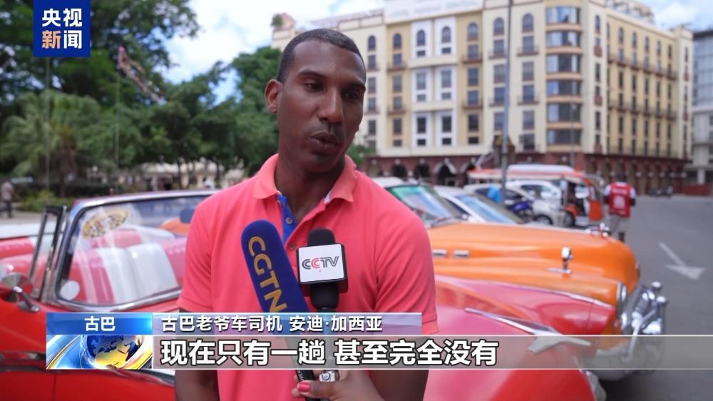 古巴老爷车司机 安迪·加西亚:情况已经大不同了,因为现在的情况,古巴的旅游业大幅下滑。以前每天能拉四趟活儿,现在只有一趟,甚至完全没有。
