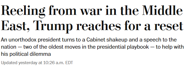 《华盛顿邮报》4月2日的分析称,美国总统特朗普在中期选举前约6个月发表全国讲话,意在“应对政治风波、缓和民众担忧、重塑政治叙事”,但此举效果有限,也未明确展示战略目标。