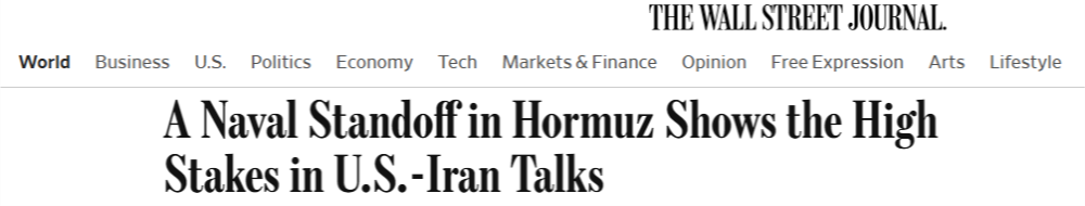 11日,正当美伊双方高级别代表团准备进行会面时,美国在战争期间首次派遣两艘驱逐舰穿越霍尔木兹海峡,引发了一场与伊朗海军的紧张对峙。美国《华尔街日报》当天发文章称,此事件凸显出美伊谈判的高风险。