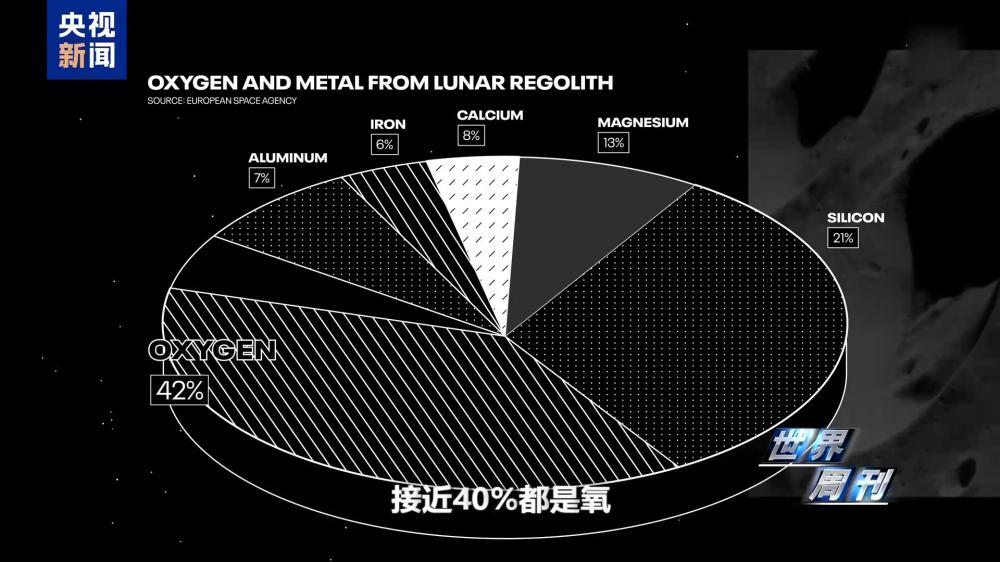 欧洲航天局科学顾问 艾丹·考利:月球看似一片荒漠,实际上蕴藏着极其宝贵的资源。月壤中含有大量金属,月球上有大量氧气,接近40%都是氧。这些都是极宝贵的资源。