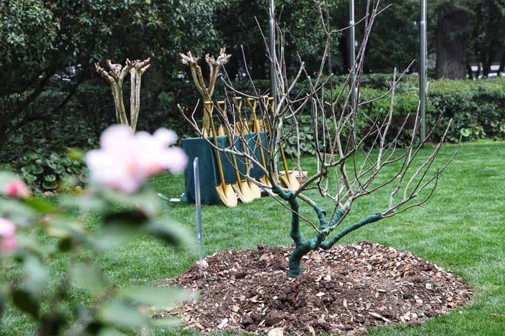 栽种在上海科学会堂草坪上的“牛顿苹果树”(资料图片)。解放日报记者 赖鑫琳 摄