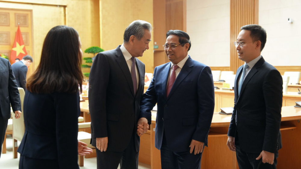 王毅首先转达中方领导人的亲切问候,表示去年4月习近平总书记、国家主席访越以来,中越全方位合作驶入快车道,充分表明两党两国关系发展具有强大内生动力和光明前景。今年越共十四大后,两党最高领导人及时通话,就深化中越命运共同体建设达成重要共识。今天上午,由两党最高领导人共同决策的“3+3”战略对话机制首次部长级会议成功召开。这是中越在全球建立的首个“3+3”机制,充分彰显了两党两国关系的高水平和战略性。
