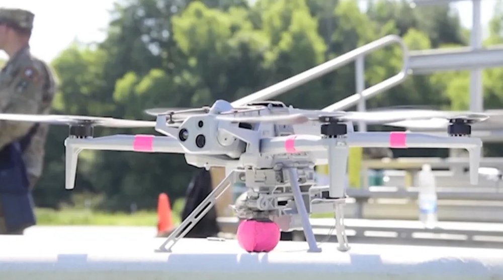 视频中,美陆军人员将标准M67手榴弹以及M69训练手榴弹装载到有专用投掷装置的小型四轴飞行器上,完成一次无人机投弹。并为这次无人机训练洋洋得意地配文——“你见过无人机投掷手榴弹吗?”