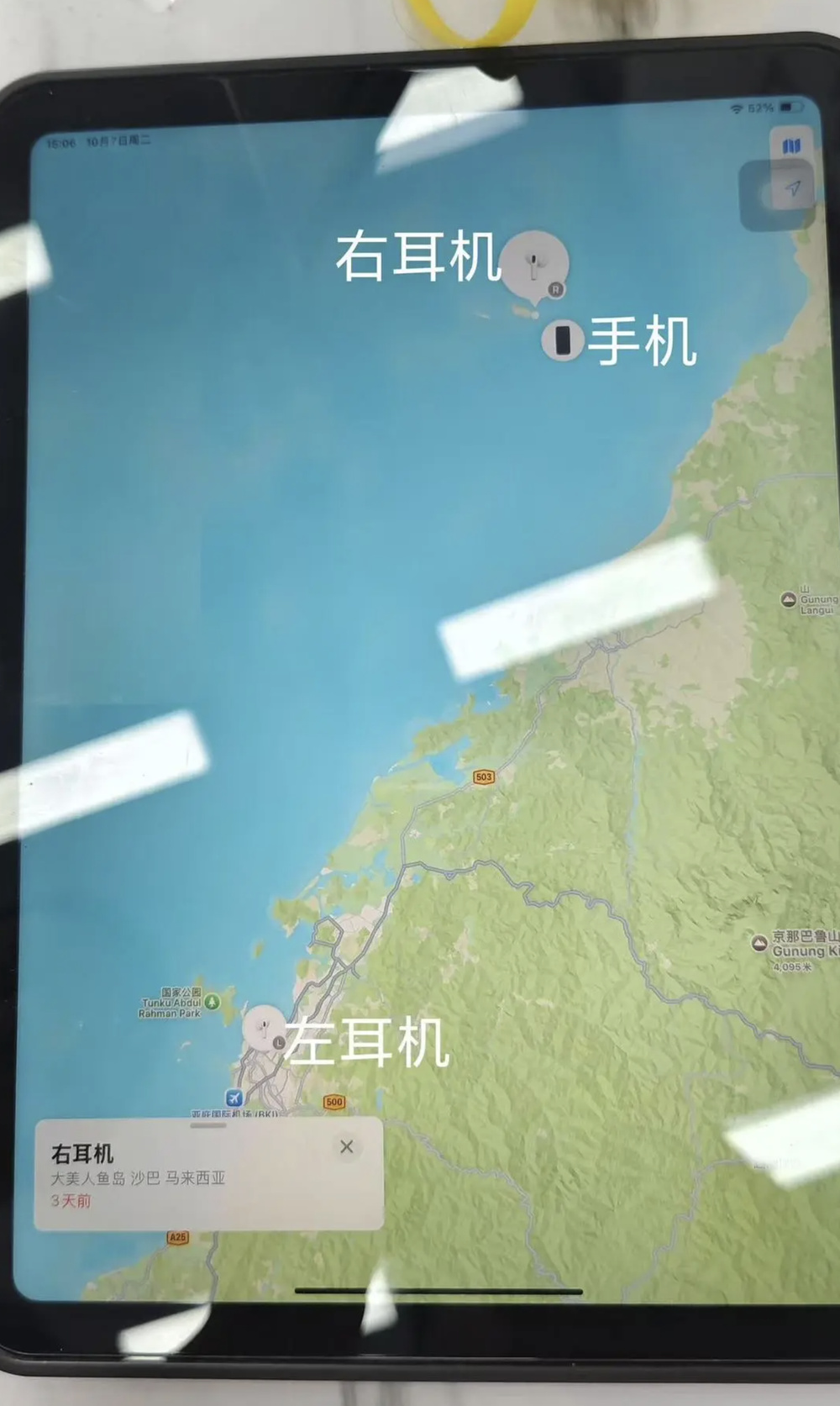 张先生称,对方在房间内发现一台平板电脑,并通过设备的定位功能找到了于晓鹏手机及蓝牙耳机的信号位置。结果显示,手机最后一次信号出现在海域深处,而两只耳机中,一只定位在市区,另一只则一直停留在海上。