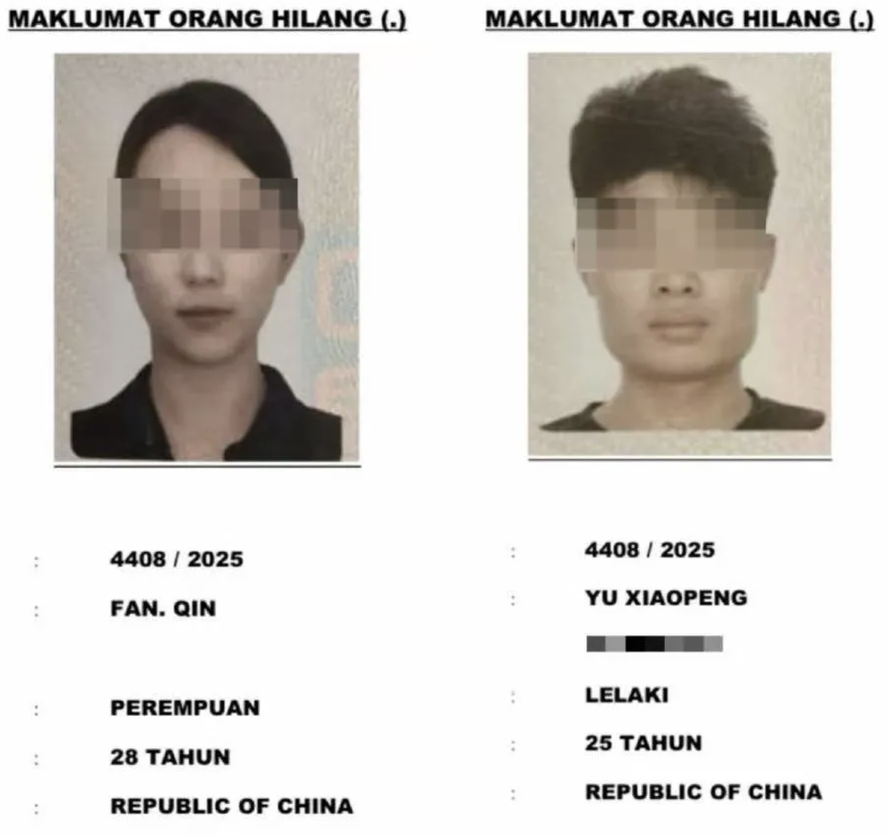 失联游客信息。图源:马来西亚皇家警察PDRM
