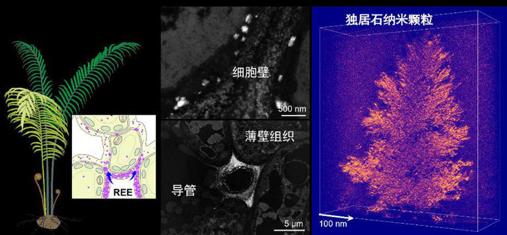 稀土元素在乌毛蕨中生物矿化为独居石纳米多晶聚集体。(研究团队供图)