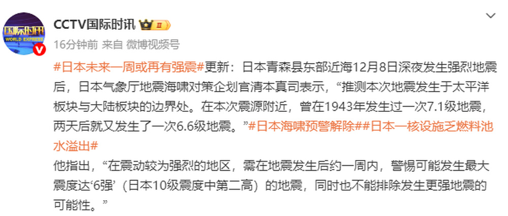 来源:综合央视新闻客户端、CCTV国际时讯、中国地震台网