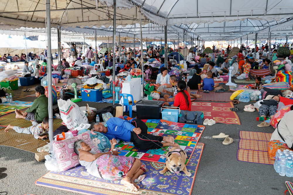 12月8日,在泰国武里南府,撤离边境省份的民众在一处避难所休息。 新华社发