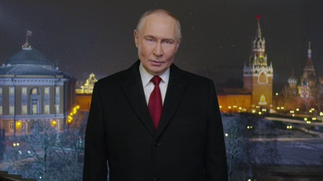 普京发表新年致辞。图源:克里姆林宫网站视频截图