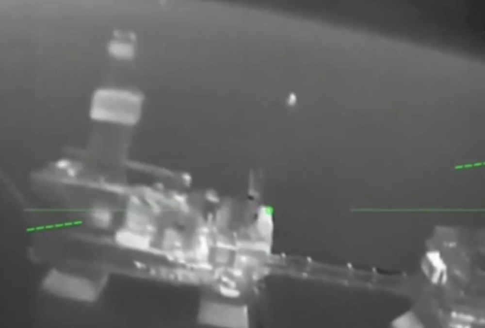 乌军袭击里海三座俄钻井平台。CCTV国际时讯微博视频截图