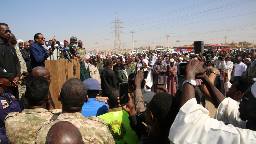 1月11日,苏丹总理伊德里斯在首都圈北喀土穆市向民众发表讲话。新华社发(穆罕默德·海德尔摄)