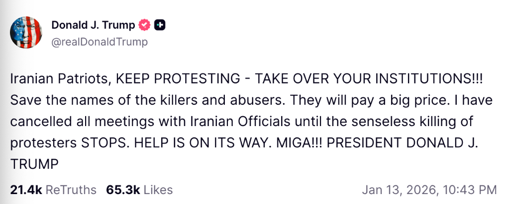 特朗普在社交媒体上发文表示已经取消所有与伊朗官员的会谈。