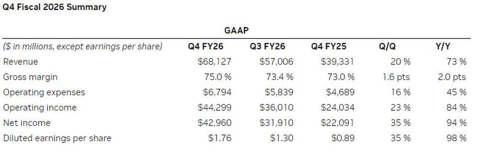 【英伟达放榜:四季度营收增长73%,盘后涨超2%】