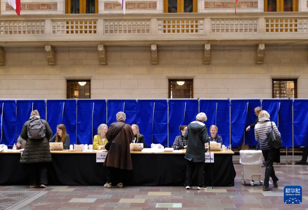 3月24日,在丹麦首都哥本哈根的市政厅,选民将选票投入票箱。新华社发(刘智超摄)