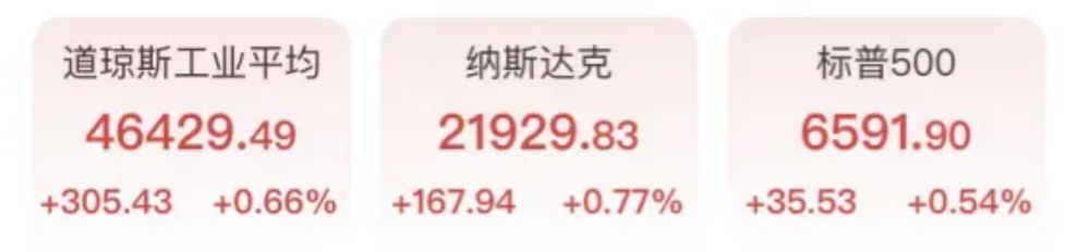 周三美股延续涨势,中东冲突缓和的前景缓解了投资者对能源供应长期中断的部分担忧。截至收盘,道琼斯工业平均指数上涨305.43点,涨幅0.66%,收于46429.49点,纳斯达克综合指数上涨0.77%,收于21929.83点,标普500指数上涨0.54%,收于6591.90点。详情>>