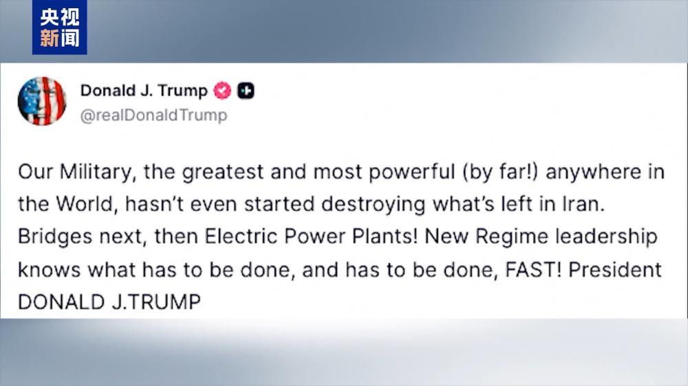 特朗普再发文 威胁打击伊朗桥梁和发电厂