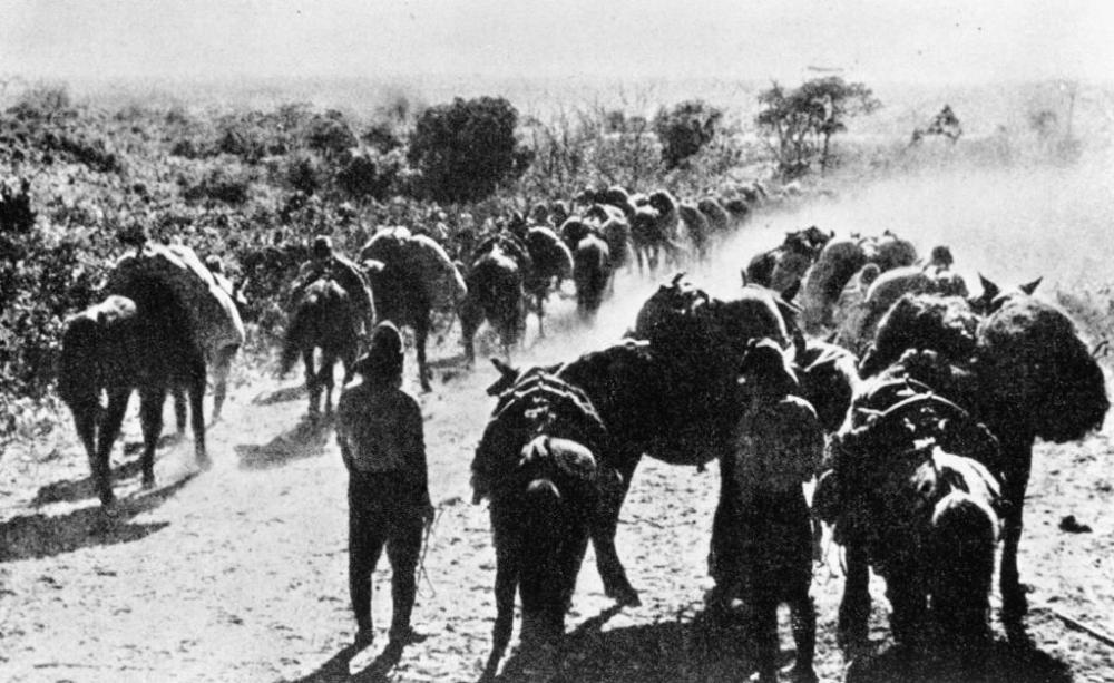 这是太平洋战争期间,日本军队在菲律宾把抢来的粮食送往前线。新华社发