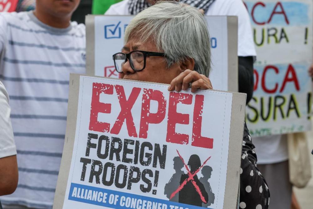 21日,在菲律宾大学内举行的一场抗议活动中,菲民间团体“新爱国联盟”秘书长雷蒙德·帕拉蒂诺对记者说,菲政府竟然允许美日这两个昔日的殖民者和侵略者派兵到菲律宾,还将菲律宾当作其备战训练的前沿基地,这是“极为讽刺”的事情。“美日来到菲律宾并非为了菲民众利益,而是为了自身地缘政治图谋,我们决不能被蒙蔽。”