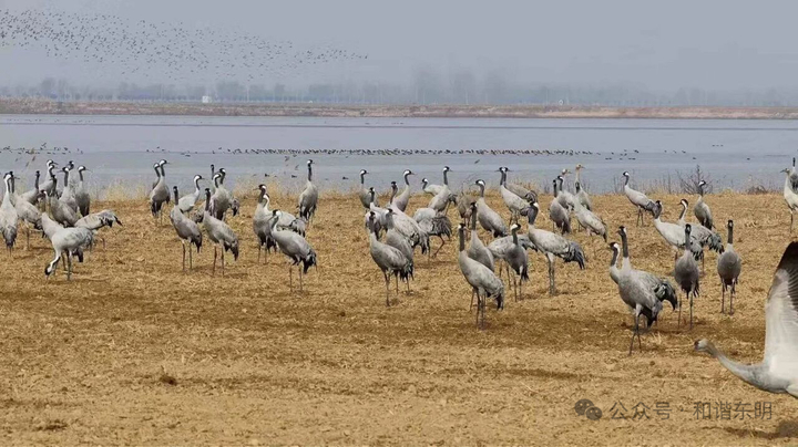 “十余只白枕鹤结伴活动,说明这里的湿地生态系统健康稳定,完全满足珍稀鸟类栖息需求。”东明县林业局森林保护站相关负责人介绍,近年来,东明县深入践行黄河流域生态保护和高质量发展重大国家战略,持续推进黄河滩区生态修复、湿地保护、水环境治理等工程,境内主要河流水质稳步提升,滩涂湿地植被丰茂、鱼虾丰富,为候鸟迁徙提供了优质的停歇地和觅食场。如今,东明县已成为候鸟迁徙重要通道与栖息地,迁徙高峰期鸟类种类达20余种,东方白鹳、大天鹅等珍稀鸟类也频频现身,绘就出“万鸟翔集、人与自然和谐共生”的生态美景。