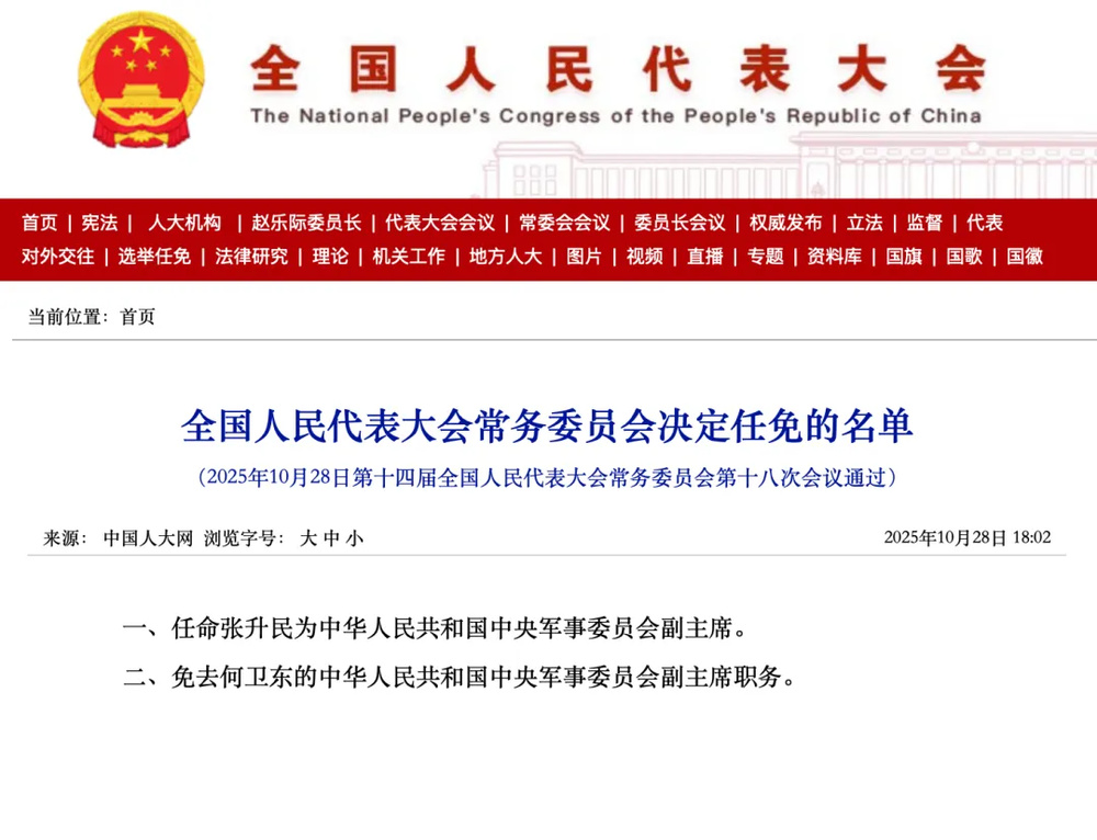 +订阅全国人民代表大会常务委员会决定任免的名单