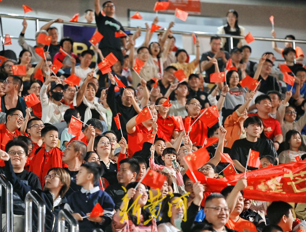 国庆假期首日 齐鲁超赛现场球迷高举国旗呐喊助威