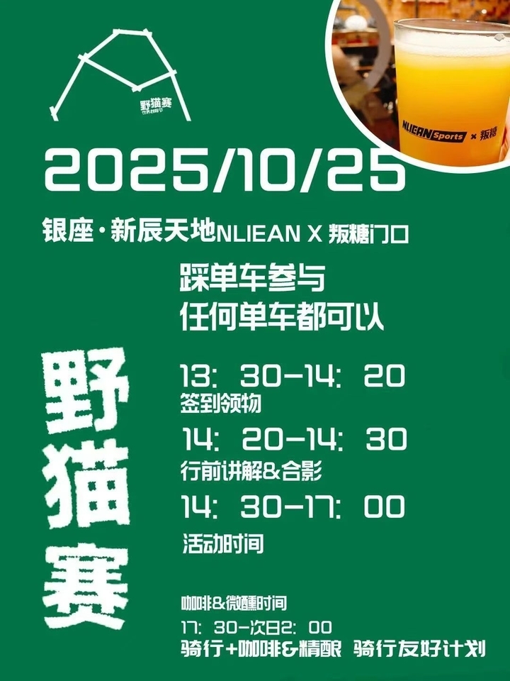 野猫赛不仅是速度的比拼,更是用车轮探索城市的独特方式。在熟悉的街巷中发现新鲜景致,在自我挑战中收获成长与力量。这个周末,让我们相聚银座新辰天地,以自由之名,共同骑行,让城市因运动而焕发勃勃生机!