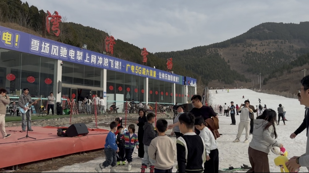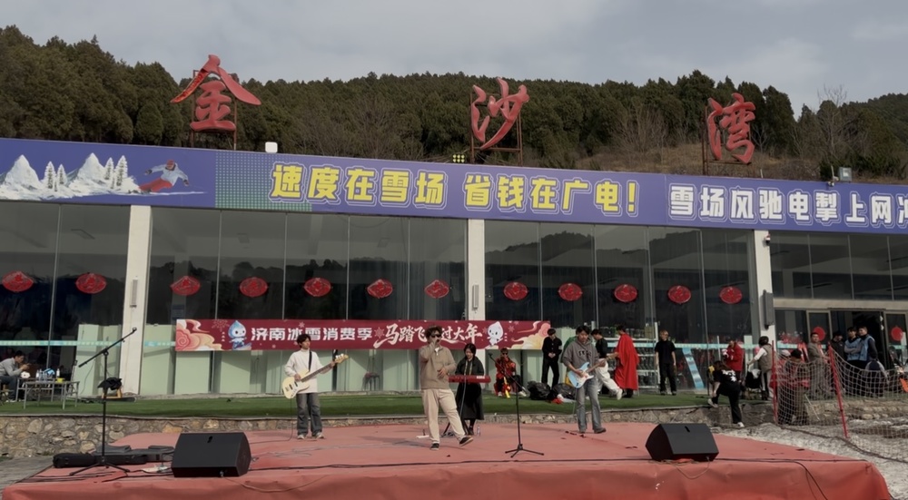 金沙湾滑雪场的雪地音乐会吸引了不少游客驻足观看,歌手与乐队踏雪开唱,游客跟着旋律挥手合唱、随乐舞动。现场还有装扮成财神爷的工作人员抛撒毛绒玩具,动感音乐与冰雪运动、传统民俗巧妙融合,为广大游客打造了沉浸式、全年龄段的新春冰雪盛宴,让游客在飞驰雪道之余,尽享视听与互动双重欢乐。