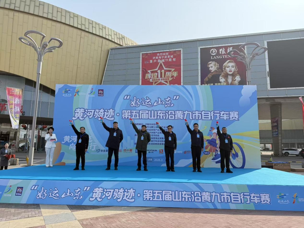 沿黄逐风,聚力前行!3月21日,“好运山东”黄河骑迹·第五届山东沿黄九市自行车赛在济南市槐荫区百联奥特莱斯(海那城)广场拉开帷幕。