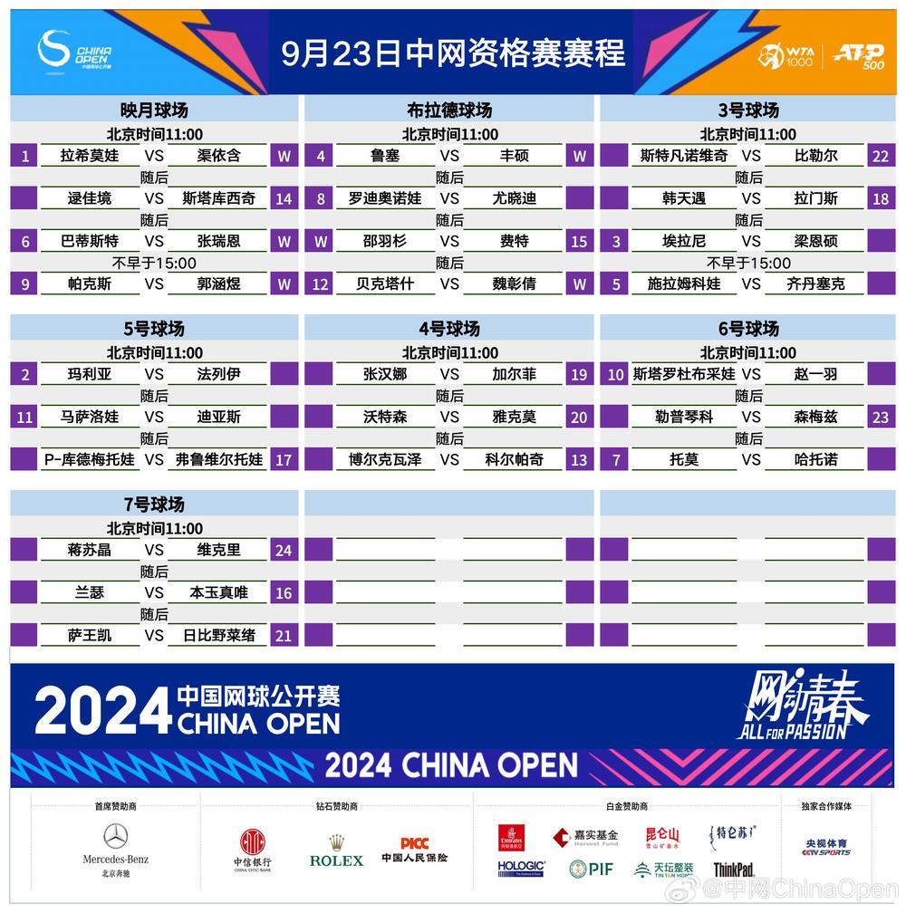2022年温网女单四强、德国老将玛利亚首轮对阵阿罗娜·法鲁,第二轮有可能对阵14号种子加尔菲。2021年法网女单四强、斯洛文尼亚选手齐丹塞克首轮挑战5号种子斯拉姆科娃,后者近期状态非常出色,在莫纳斯提尔和华欣两站WTA250背靠背闯入决赛,并且在华欣拿到了生涯首冠。中网女单资格赛将在9月23日和24日两天举行,球迷可以通过中网官方小程序领票入场,来到国家网球中心为中国金花加油,为埃拉尼、玛利亚等名将助威。