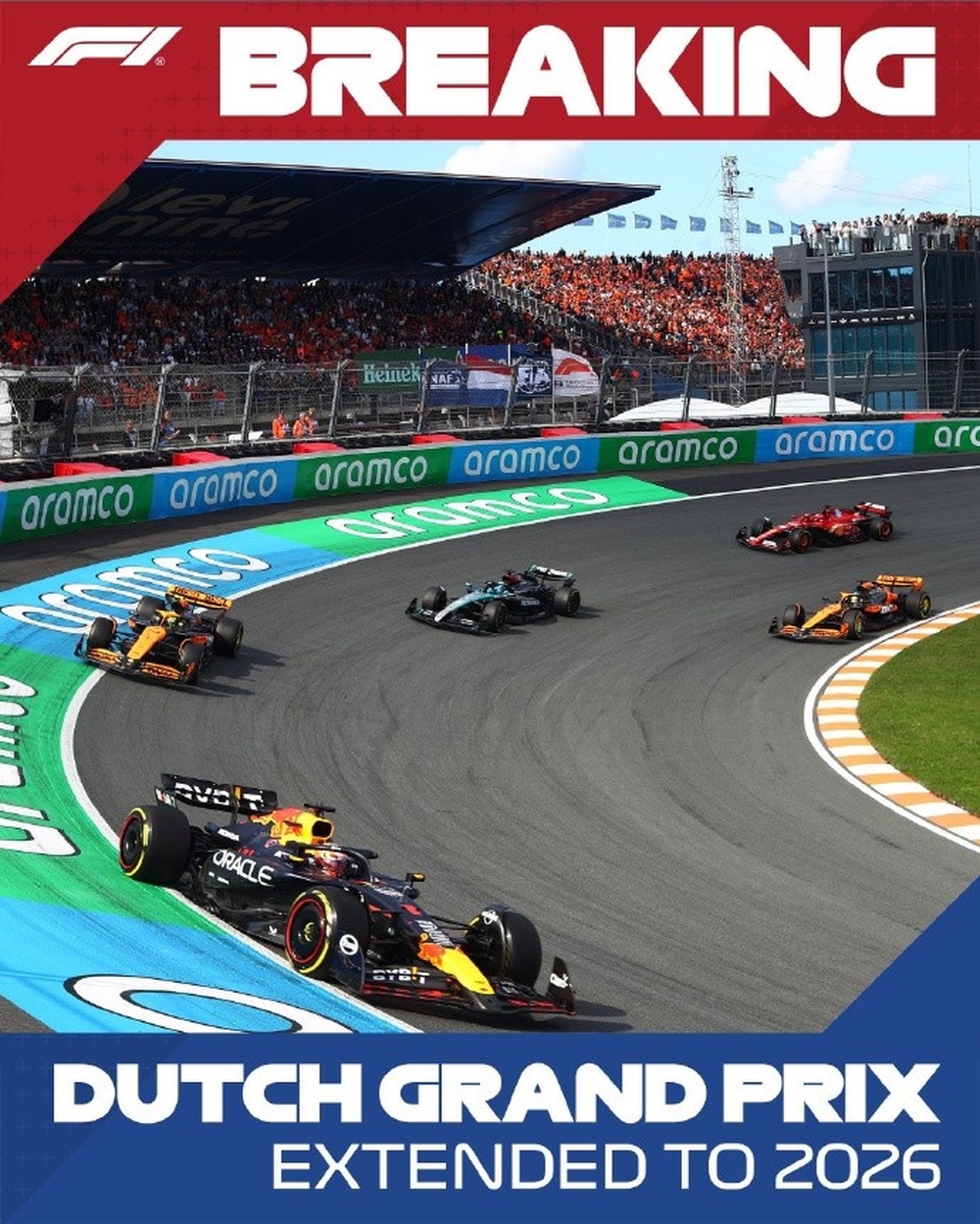 据官方消息,F1将与荷兰大奖赛续约至2026年,但此后将不再续约。