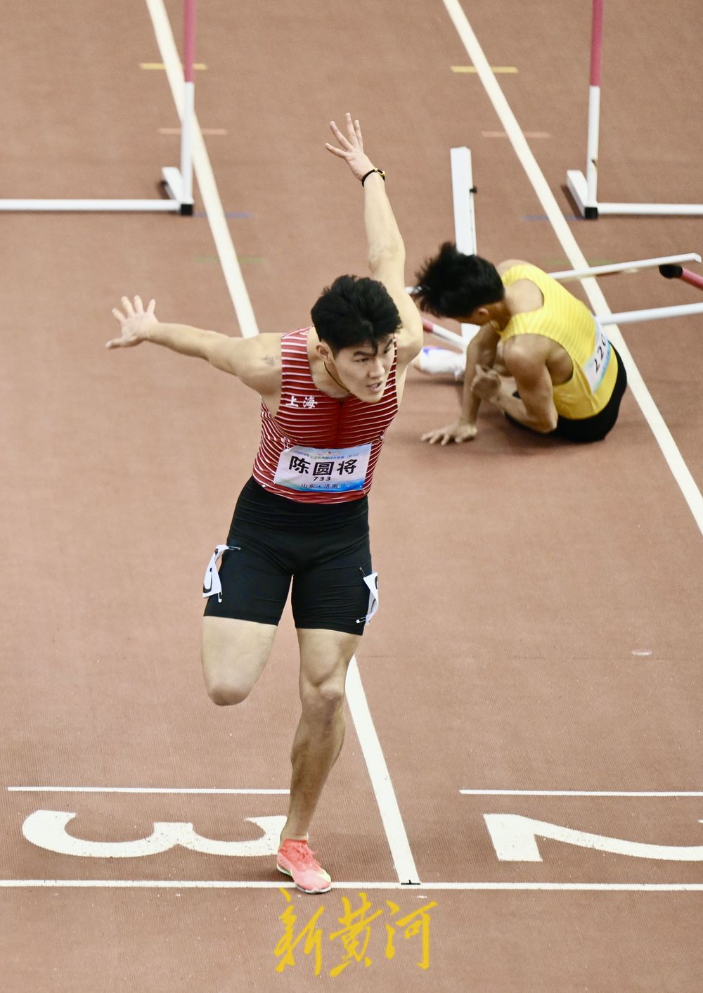 2月19日,2025年全国室内田径大奖赛济南站继续进行。男子60米栏决赛中,陈圆将以7秒64夺得冠军。