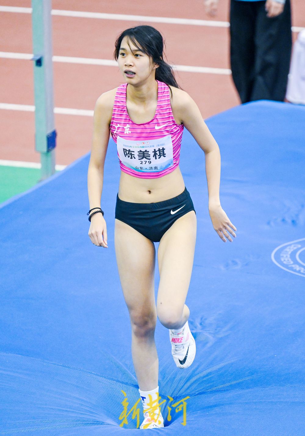 2月19日,全国室内田径大奖赛(第3站)继续在济南进行。在女子跳高比赛中,广东队选手陈美棋以1米80的成绩夺得冠军。